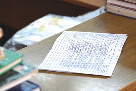 Answer exam sheet form on a table, top view. Education background.