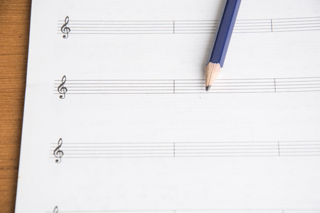 close up pencil on music sheet paper, music concept