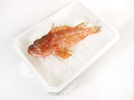 beautiful red fish was photographed on ice slices