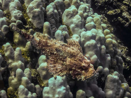 bearded scorpionfish on white corals in the red sea