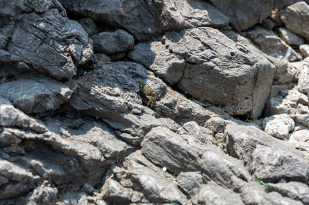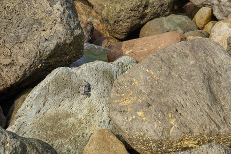 Marbled rock crab or pachygrapsus marmoratus. Magoito Coast, Portugal