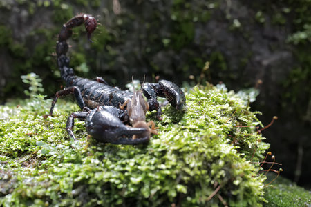 Scorpion on the rock in the forest. (Heterometrus sp.)