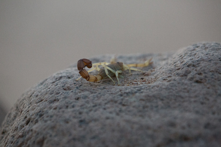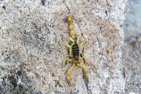 Yellow Scorpion on a rock in Baja California Sur desert Mexico