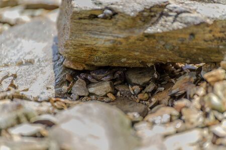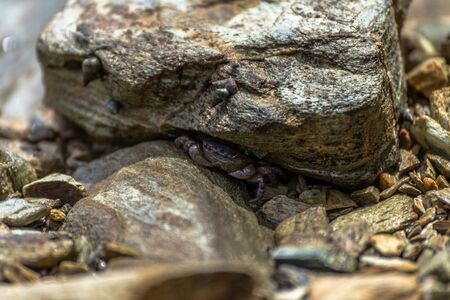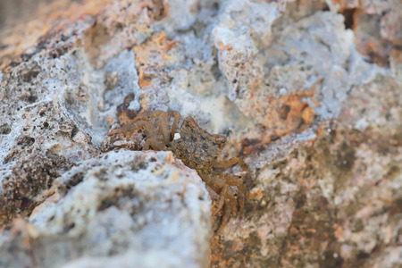 Sea animal Crab - Brachyura climbing on a stone by the sea
