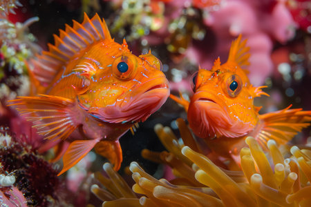Scorpionfish up close, with its intricate details, vibrant colors and unique features. Fascinating and venomous marine creature. Generative AI