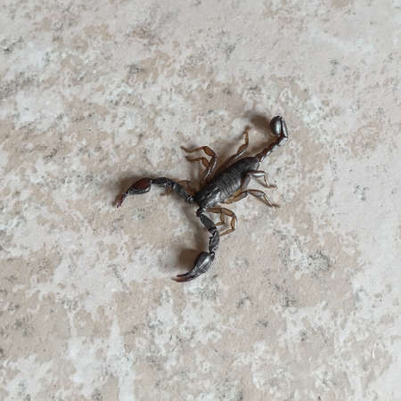 scorpion problem, scorpion plague indoors. Poisonous animal inside the house, need for fingerings. Sting danger concept.