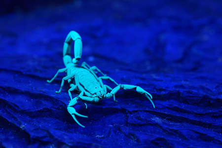 Scorpio illuminated by UV light.