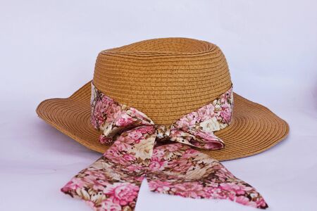 Stock Photo - a straw hat with a ribbon on a white background