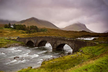 Bridge on Sligachan with Cuillins Hills to the fund. Isle of Skye, Scotland