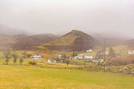 Overcast view of rural landscape at Boreraig, Scotland