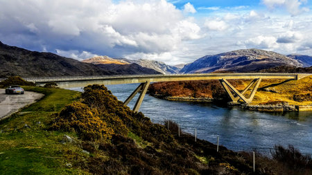 Panoramic view of Butter Bridge over Kinglas Water in the Loch Lomond National Park,Scotland