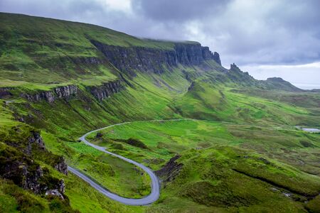 Quirang and devious road in a cloudy day, Isle of Skye, Scotland