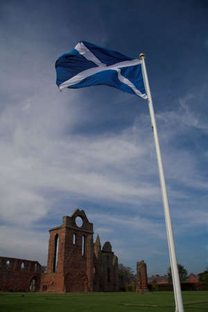 The saltire flag above the ruins of Arbroath Abbey where the famous Declaration was drawn up in 1320.