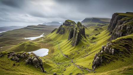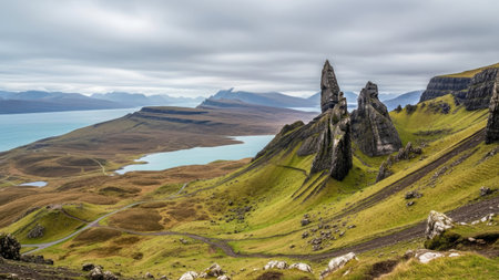 A panoramic view of the landscape on the Isle of Skye in Scotland