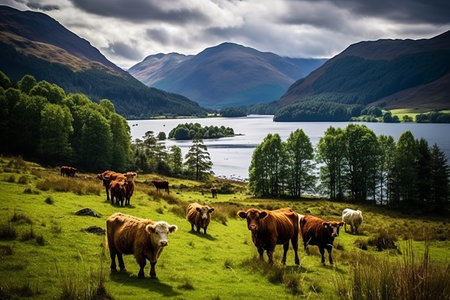 Beautiful scenic landscape of Scotland nature with beautiful evening cloudy sky