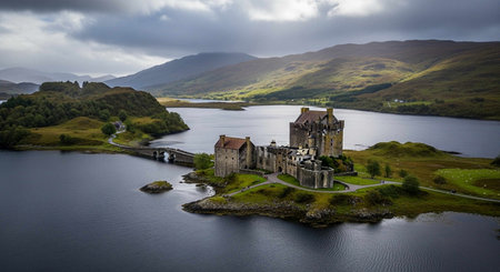 Breathtaking aerial scenery showcases winding rivers and green valleys surrounded by rugged mountains under a moody sky, capturing the essence of serene highland beauty.