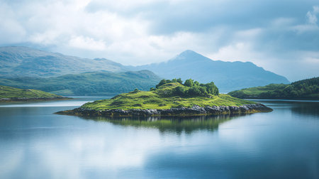Mountain landscape with lake and reflection in water, Scotland, UK