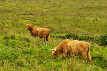 hardy highland cattle on skye in scotland