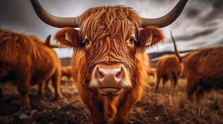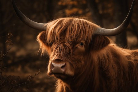 Highland cow with horns. Generative AI