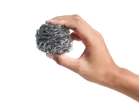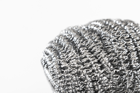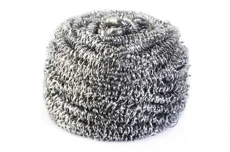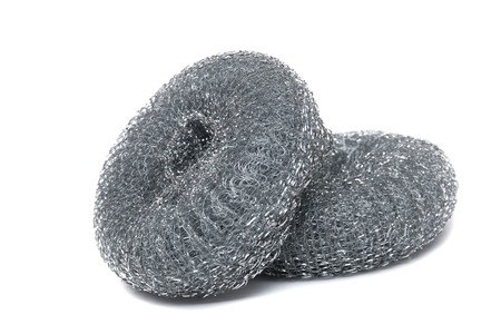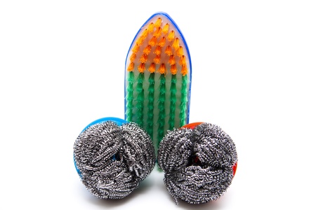 Metal brush for kitchen utensils, isolate on white. Kitchen scrubber for washing and cleaning dishes.
