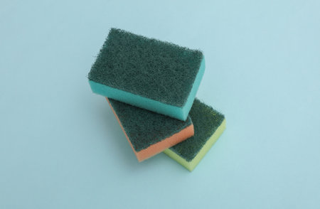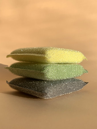 Dish sponges still life. Colorful cleaning sponges. Design composition with sponges.