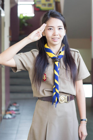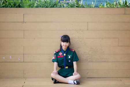 BANGKOK, THAILAND - Sep 4, 201 : thai high school student in boy scout uniform happy and relax, Bangkok Thailand.