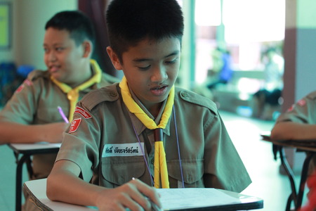 Chonburi, Thailand - April 4: unidentified Thai Boy Scout and in 20th THAILAND NATIONAL SCOUT JAMBOREE as part of the study on April 4,2015 in Vajiravudh Scout Camp, Chonburi, Thailand.