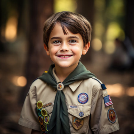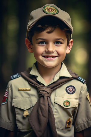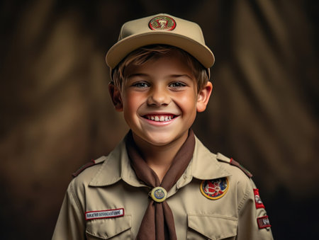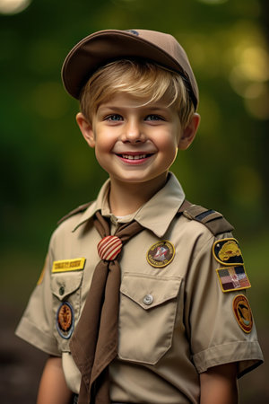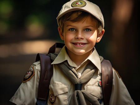 Close up Handsome White Male Scout in Uniform Looking at Camera.