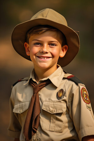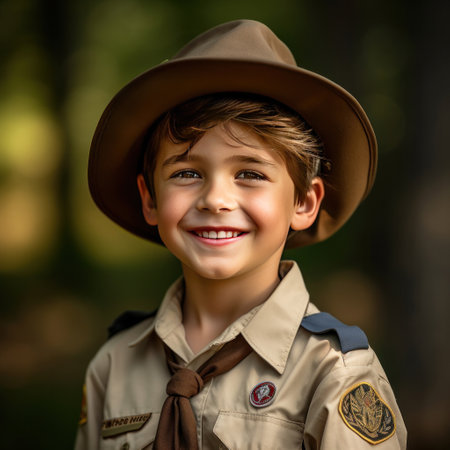 scout leader at international gathering in uniform with campaign hat and scarf red and white
