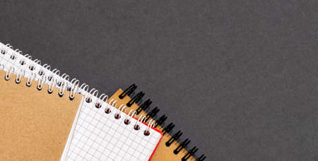 Design concept - Top view of empty kraft notebook on black background. mock up.