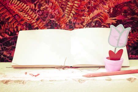 Vintage Notebook Open Pages Blank Sticky Notes Flatlay Design old top aged worn pink blue memo view