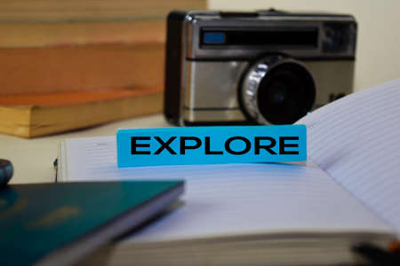 Pen wood table retro travel wooden notebook camera desk background vintage paper