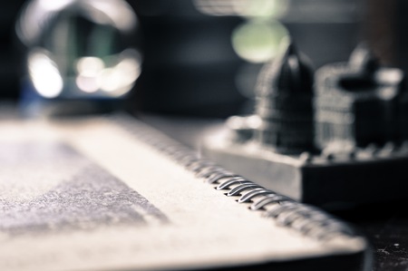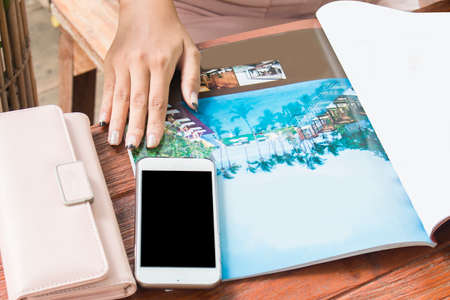 abstract background of close up hand paperweight and notebook, take some rest after all day work