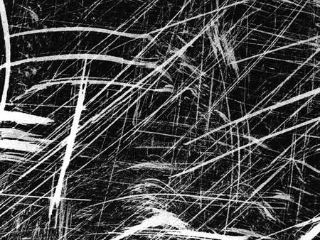 This abstract grunge texture features random lines and patterns against a black surface, creating a visually striking backdrop perfect for artistic projects.