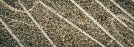 BANNER abstract close-up macro real photo beautiful wallpaper. Fisherman rope net texture fiber surface pattern. Sea blue green light colour. Futuristic subtle waving lines art modern. Pale background