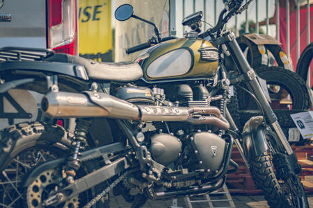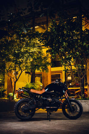 Motorcycle series: Vintage cafe racer motorcycle parking in alley
