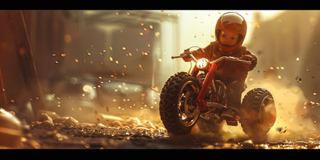 3d rendering of a child riding a motocross motorbike