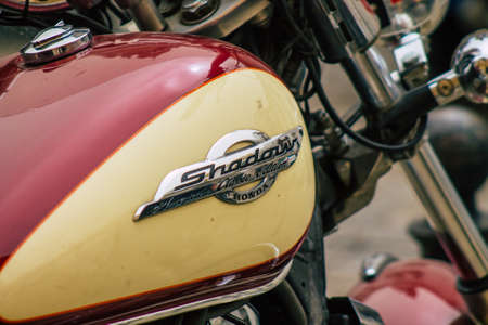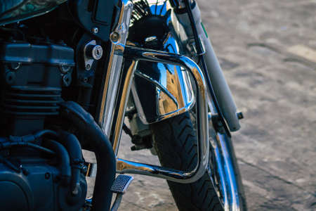 Limassol Cyprus June 01, 2020 Closeup of a motorcycle parked in the streets of Limassol in Cyprus island