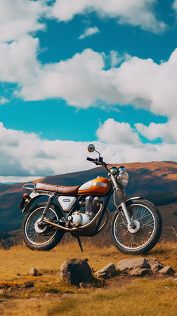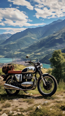 motorcycle in the mountains against the backdrop of a beautiful landscape
