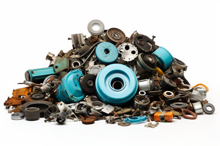 A striking collection of various scrap metal pieces and junk parts, illustrating the abundance and chaotic beauty of industrial waste materials ideal for creative and artistic projects.