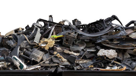 Pile of scrap metal and plastic waste in a garbage dump.
