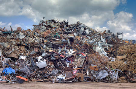 Huge mountain of mainly metal garbage in a junkyard