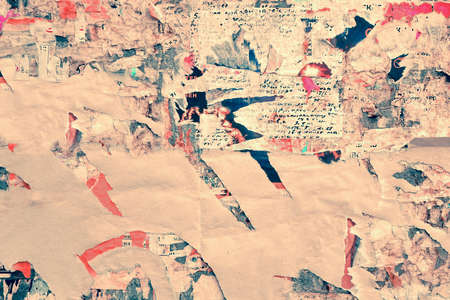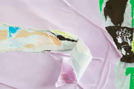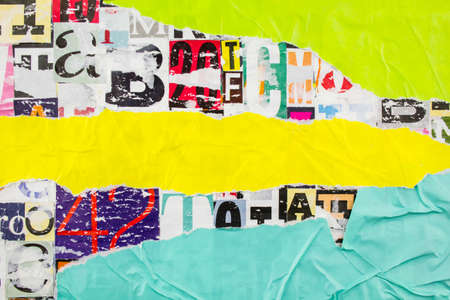 Old grunge ripped torn collage posters creased crumpled paper placard texture background with copy space for text or image