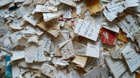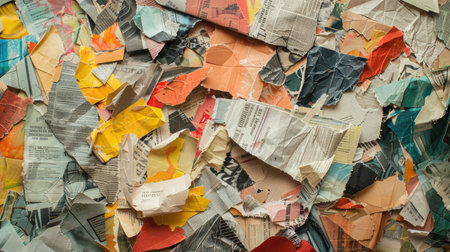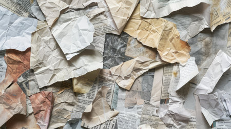 Disarray of crumpled papers and newspaper clippings creating an abstract textured collage background