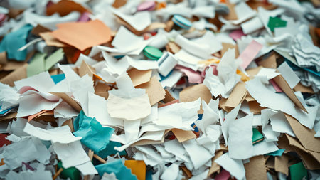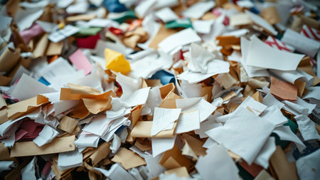 Generative AI, collage of waste paper pieces, ripped paper with torn, recycling concept