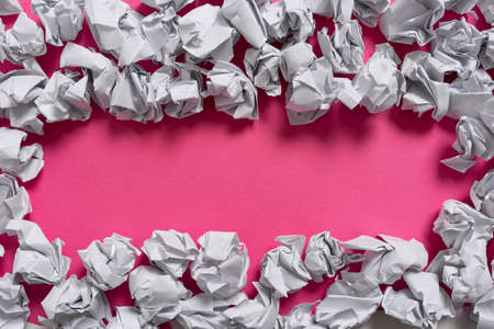 composition of crumpled paper in pink, yellow, blue and purple colors on a bright background.