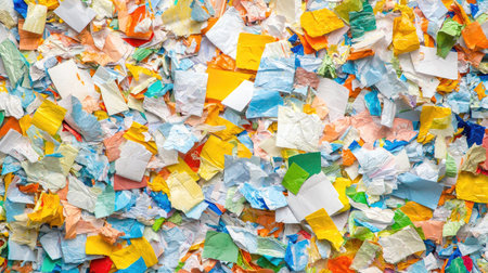Vibrant texture of colorful paper scraps showcasing a variety of tones and patterns ideal for backgrounds in artistic designs and creative projects.