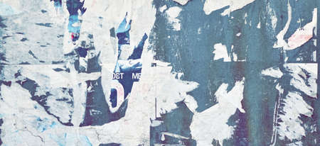 Artistic Urban Street Background with Grungy Wall with Ripped, Torn And Peeled Posters. Old Wall with Scratched Advertising. Old Billboard with Torn Posters. Vintage Wide Background and Texture.