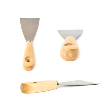 Plastic putty knife for hanging wallpapers and plastering trowel isolated over white background