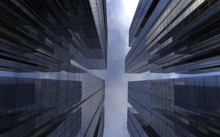 modern high rise buildings against the sky. 3d illustration on the theme of business success and technology